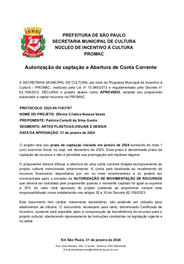 É com muita alegria e orgulho que compartilhamos aqui o reconhecimento do nosso trabalho em captar recursos através do incentivo fiscal proporcionado pela lei PROMAC da cidade de São Paulo. Entre Abril e Julho, estaremos nos organizando para desenvolver mais 6 oficinas no segundo semestre, utilizando os benefícios dessa lei de incentivo.